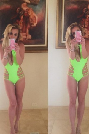 Знаменитость часто отдыхает на пляже, а в своем профиле в Instagram делится с поклонниками фотографиями в бикини. На днях Бритни Спирс опубликовала снимок в салатовом купальнике и призналась,что ходила по магазинам и это ее любимый приобретенный наряд.