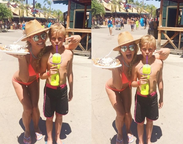 На фотографиях, которые Бритни Спирс опубликовала в личном микроблоге, она позирует с детьми в бассейне. Не удивительно, что для такого вида развлечений Бритни выбрала стильный бикини, благодаря которому поклонники в очередной раз сумели убедиться в том, каких великолепных результатов достигла Спирс в погоне за идеальным телом. Так держать, красотка!