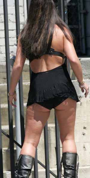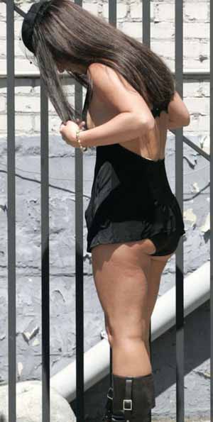 А изредка фотографам удается заснять ее без этих аксессуаров: зрелище просто невероятное, тут и вправду никакой макияж не поможет. Белокурый ангелочек превратился в толстую тетку и выглядит на все 50 лет вместо своих 23.