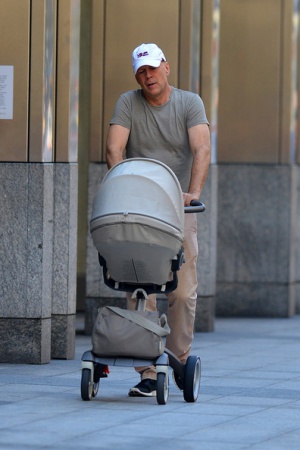 Брюс Уиллис пойман в объектив во время променада с малышкой Мейбел в Нью-Йорке.