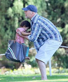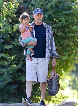 На днях 58-летний Уиллис отправился на прогулку с крошкой в один из парков Лос-Анджелеса. Отец и дочь прогуливались по дорожкам, расставляли парковые флажки и о чем-то доверительно общались. Актер с удовольствием носил свою кровинушку на руках и совершенно не прятал ее от папарацци – видно, что он очень гордится полуторагодовалой девочкой.