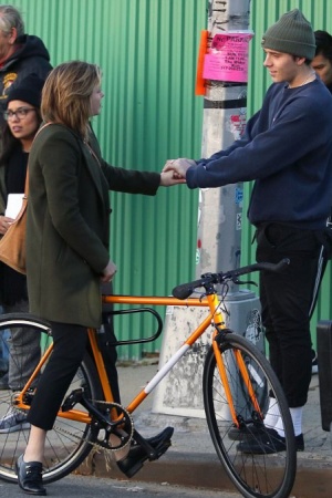 В Нью-Йорке проходила съемка сцены, где актриса должна была кататься по улицам на велосипеде. Перерыв между тяжелыми съемками решил скрасить ее бойфренд Бруклин, посетив девушку на съемочной площадке. Папарацции смогли запечатлеть, как юная пара мило беседовала и обнималась. Ребята явно за друг-другом очень скучают, ведь в свободное от съемок время пытаются все время быть вместе. Их то и дело замечают за прогулками, романтическими свиданиями и на светских мероприятиях.