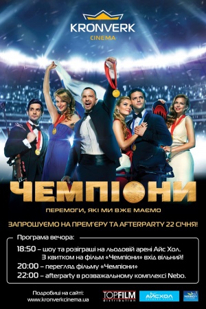 20:00 - показ фильма "Чемпионы" в кинотеатре "Kronverk Cinema" Дафи.