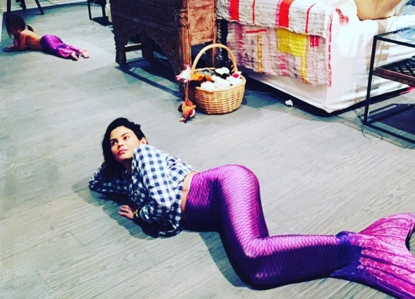 "Событие", – подписал актер снимок, на котором его супруга лежит на полу с чехлом-хвостом русалки на ногах и нежно приоткрыв животик.