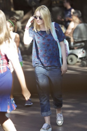 Детство в Голливуде среди бесконечных съемок не сделало 19-летнюю Дакоту зацикленной на карьере занудой. Актриса была рада надеть ушки Минни Маус и покричать от души, катаясь на горках в парке развлечений.