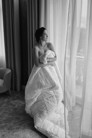 Соблазнительные кадры Астафьева разместила на своей странице в Instagram. Звезда позировала обнаженной на балконе, едва прикрывшись одеялом, в черном белье с бутылкой шампанского в руках.