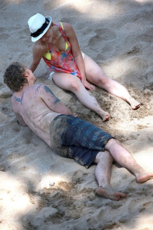 Звездная парочка наслаждалась весенним ласковым солнцем и теплой водой. Дэкс и Кристен с удовольствием играли в песке, как малые дети. Что может быть романтичнее для семейной пары с маленьким ребенком?
