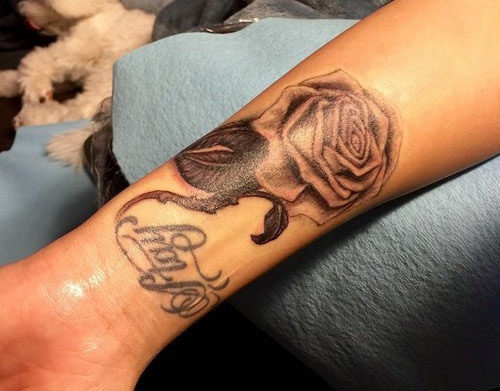 Раньше левое запястье Деми украшало изображение женских губ. Но по непонятным причинам Ловато решила от него избавиться. Мастеру пришлось хорошенько потрудиться, чтобы набить на коже звезды розу, а старый узор превратить в изящный листочек.