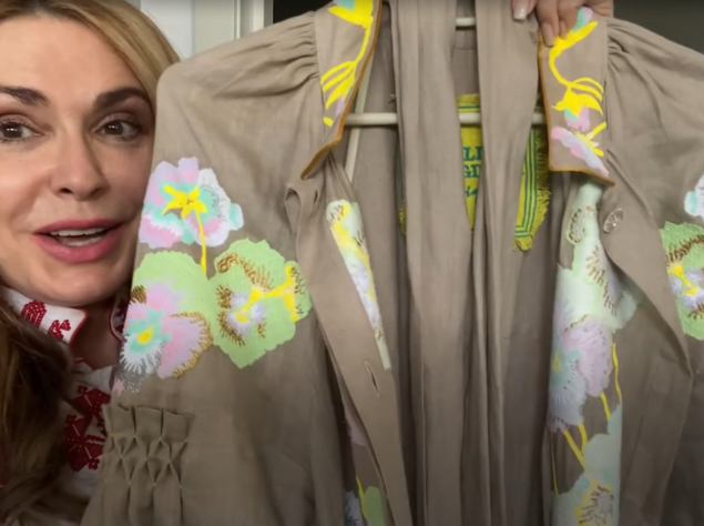 Так, в шкафу Ольги присутствуют два невероятно красивых платья, дизайн которых она разработала лично. Дебютная коллекция от Ольги Сумской под названием RIDNA увидела свет в 2020 и была приурочена к 120-летию всемирно известной украинской художницы Екатерины Билокур.