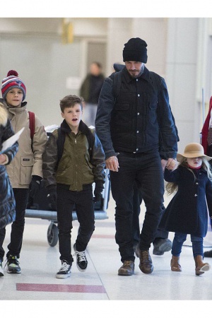 В аэропорту Нью-Йорка папарацци заметили известного футболиста Дэвида Бекхэма в компании сыновей и повзрослевшей малышки Харпер Севен Бекхэм.