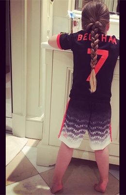 В свои 4 года девочка уже знает о том, что ее папа был выдающимся спортсменом, и разделяет любовь Дэвида к футболу. А также с удовольствием носит футболку с порядковым номером семь, совсем как и экс-спортсмен когда-то. Похоже, эта футболка заменяет малышке любимую пижаму, ведь именно в ней она отправилась на днях ко сну.
