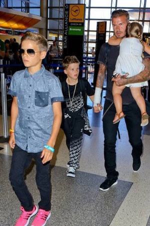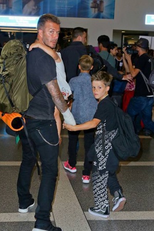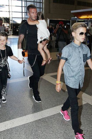 Дэвид Бекхэм с детьми покинул Штаты. Они возвращались домой в Англию после каникул, где их уже ждала Виктория Бекхэм, которая вернулась в Лондон из-за дел на неделю раньше.