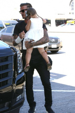 Между тем сейчас широко обсуждается инцидент, который произошел в прошлый четверг с Дэвидом. Он упал со своего мотоцикла прямо на знаменитом голливудском бульваре Сансет. К счастью 39-летний мужчина пострадал несильно, лишь поранил немного руку.