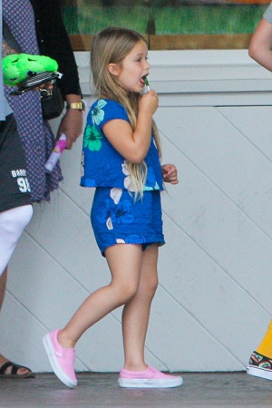 За один день звездное семейство попало в объективы фотографов два раза - сначала засветились Бруклин с сестрой, а потом с папарацци встретился Дэвид Бекхэм со всеми своими детьми.