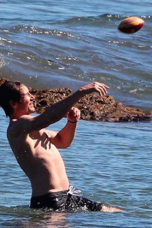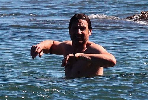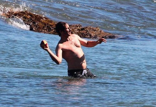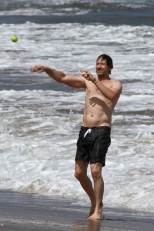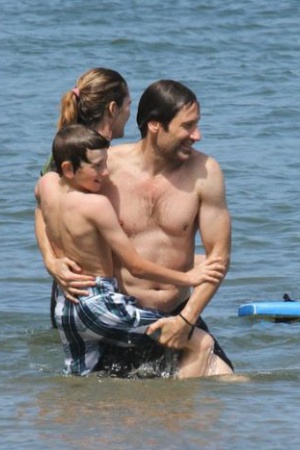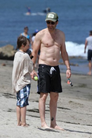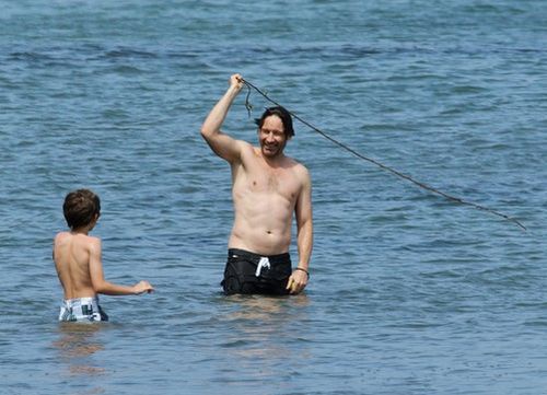 Уже два летних уикенда подряд Дэвид проводит на пляже. Вместе с сыном, 9-летним Кидом, Духовны наслаждается купанием и игрой в мяч.