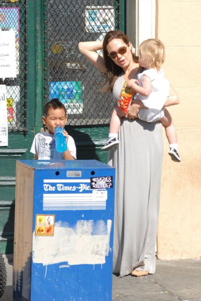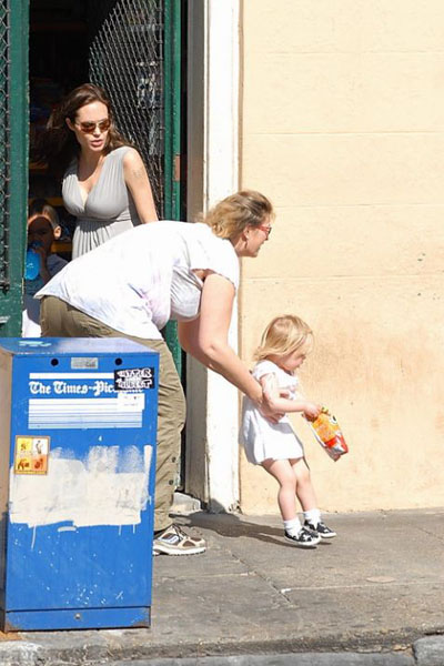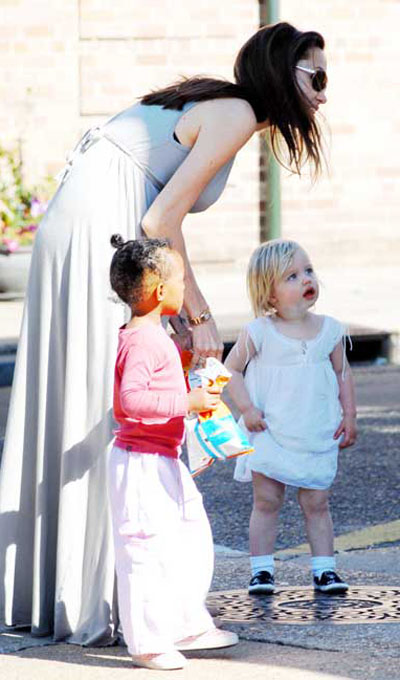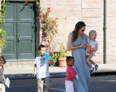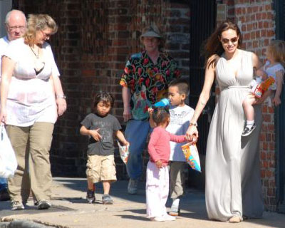Пока мы переживаем, как это Анжелина Джоли стимулировала себе овуляцию и зачала близнецов, беременная этими близнецами Энжи гуляла на прошедших выходных в Новом Орлеане со всеми своими детьми: Мэддоксом, Паксом, Захарой и Шайло.