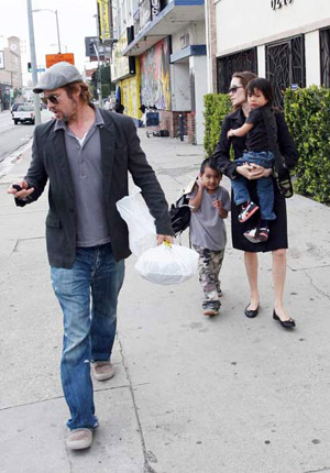 Брэд Питт и Анжелина Джоли попались папарацци в Голливуде.