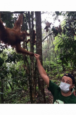 Леонардо ДиКаприо продолжает свой визит в Индонезию. Актер знакомится с обитателями диких лесов Суматры. В своем Instagram актер рассказал о встрече с местными обезьянками орангутанами и даже выложил небольшой фотоотчет.
