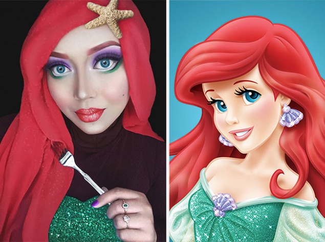 Русалочка, Мулан, Джафар и многие другие ... Малазийская визажистка Сарасвати может превратиться в любого героя с диснеевских мультфильмов. И не только благодаря мейк-апу. Она умело использует хиджаб, он завершает образы, которые выходят впечатляющими.