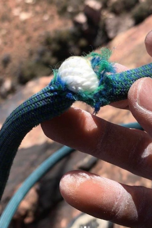 Он разместил несколько кадров, снятых во время восхождения, где видно злополучную страховочную веревку.