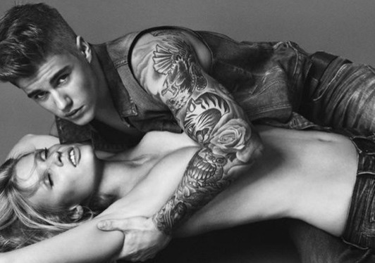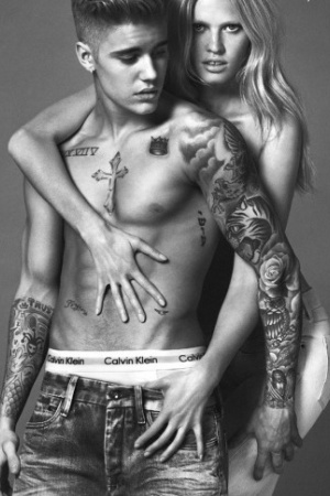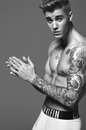 В рекламной фотосессии бренда джинсов кумир подростков появляется в одних только трусах. Бибер продемонстрировал безупречное прокачанное тело и, конечно же, свои многочисленные татуировки на руках, плечах и шее.