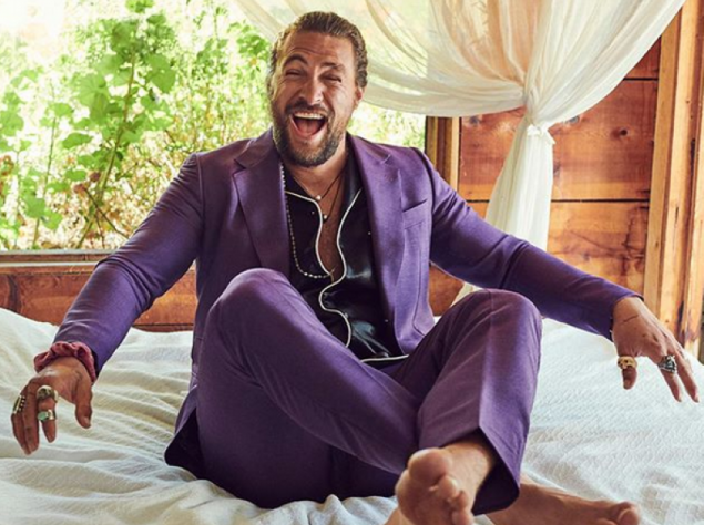 В то же время в Instagram журнала Еsquire появилось видео, на котором Джейсон Момоа принимает ванну в джинсах и рубашке.
