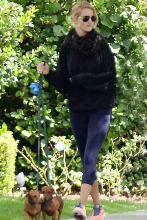 В ходе неспешной прогулки пара выгуливала своих собак.
