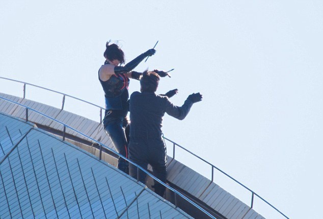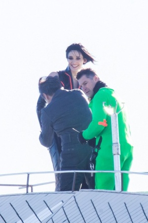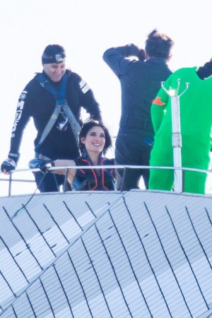 Вместе с Чаном на здании в 67 метров показывала мастер-класс Тесс Хаубрич. Стоит отметить, что актриса была пристегнута страховочным тросом, а Джеки, по традиции, работал без страховки!