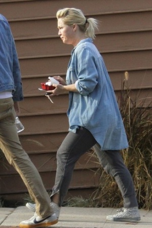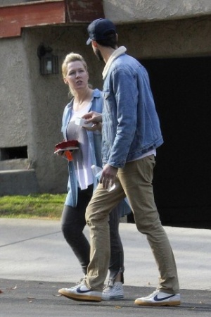 43-летняя Дженни и 34-летний Дэвид, которые в июле 2015 поженились, впервые были замечены фотографами во время совместной прогулки по Лос-Анджелесу, США. Дженни вышла на улицу без макияжа и сосредоточенно что-то рассказывала супругу, держа в руках блокнот. Актриса надела на прогулку джинсы, свободную рубашку, а короткие волосы собрала в хвост. Муж Гарт предпочел также джинсовый стиль: актер примерил джинсовую куртку, брюки, кроссовки и кепку.