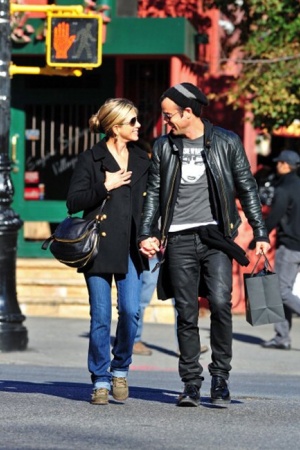 Дженнифер Энистон и ее новоиспеченный муж Джастин Теру достаточно сдержанно ведут себя на публике. Но словить моменты их семейного счастья иногда удается. В их глазах читается любовь, а в улыбке - личное счастье.