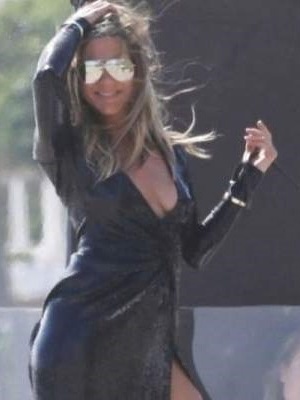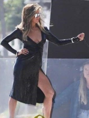 50-летняя Дженнифер Энистон приняла участие в новой фотосессии, кадры с бэкстейджа которой накануне появились в сети. Звезда попала в объективы папарацци во время очередной модной съемки, которая проходила на одном из пляжей Малибу. На кадрах актриса предстает в черном латексном платье-халате с глубоким декольте, обнажающим ее грудь, и разрезом на ноге.