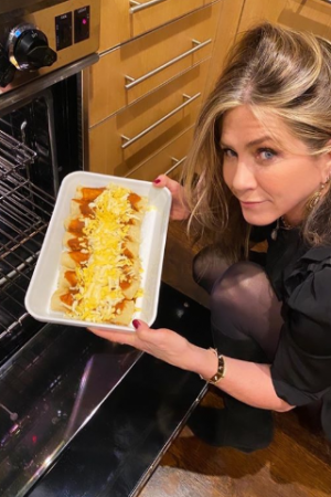 Для своего кулинарного шедевра Дженнифер Энистон выбрала традиционное острое мексиканское блюдо Энчилада. Оно готовится из кукурузной муки, из которой выпекают корж, а потом заворачивают в него начинку.