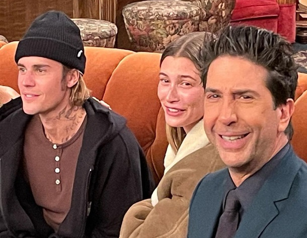 На другом снимке запечатлены Дэвид Швиммер, Джастин и Хейли Биберы. Канадский певец стал одним из приглашенных гостей эпизода, а супруга поддержала его.
