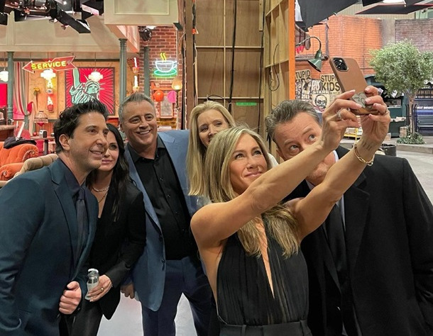 Так, исполнительница роли Речел сделала селфи со своими коллегами и друзьями: Дэвидом Швиммером, Кортни Кокс, Мэттом Лебланом, Лизой Кудроу и Мэттью Перри.