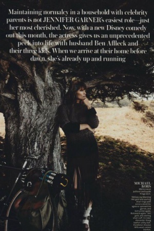 О том, как им с Беном Аффлеком удается находить время и на работу, и на семью: "Вы проходите через разные фазы. Не стоит ожидать, что за вами постоянно будут ухаживать. Сейчас, например, я не хочу за ним ухаживать — у меня для этого не хватит энергии. Но мы все же заботимся друг о друге. Мы трудимся ради наших отношений, не жалеем сил, чтобы делать все в нужное время и поддерживать нашу любовь".