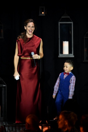Актриса посетила гала-вечер Children Illumination Gala и выбрала для выхода в свет роскошное бардовое платье сложного фасона. Наряд украшал золотистый пояс, который также подчеркнул стройную талию 46-летней Дженнифер, а образ завершали шикарные аксессуары — массивные серьги, браслеты и кольцо. Но главным украшением стали счастливые глаза актрисы и искренняя улыбка. Похоже, новые отношения пошли ей только на пользу!