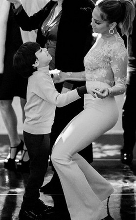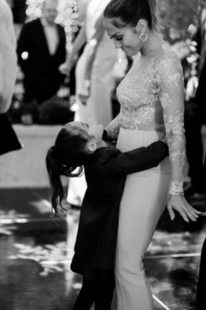 На последних черно-белых снимках 46-летняя звезда в брюках и прозрачной блузке танцует со своими детьми - дочерью Эммой Мерибел и сыном Максимилианом.