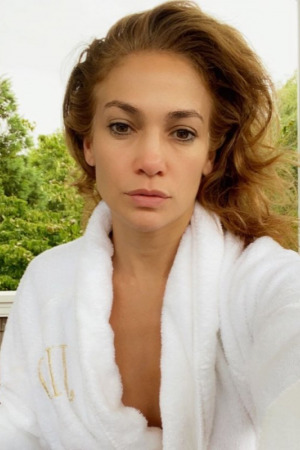 Судя по всему, Дженнифер сделала это селфи перед завтраком, сидя на летней террасе своего дома в одном лишь халате.