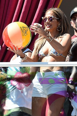 Красавица Дженнифер Лопес вместе с любимым Каспером Смартом, посетила шумную вечеринку Carnival Del Sol в клубе Drai's Beach Club в Лас-Вегасе. Певица на вечеринке выступила в роли ведущей. Дженнифер предстала перед публикой в цветастом бикини и коротеньких шортиках.