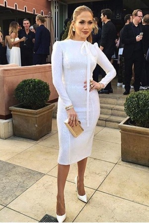 Тем не менее, порой возлюбленная Каспера Смарта предпочитает сдержанные наряды, которые хоть и подчеркивают фигуру певицы, но не столь откровенным образом, как это происходит обычно. Ярким примером изысканного выбора Джей Ло является ее появление на вечеринке стилистов, которые праздновали свою победу. Что сказать, элегантность Дженнифер к лицу!