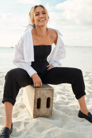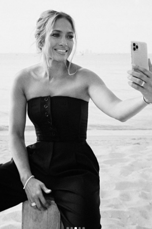 Фото со съемки звезда опубликовала в своем Instagram. На них она позирует в четырех образах. 51-летняя Лопес позировала на пляже островов Флорида-Кис в трендовом цельном купальнике бежевого цвета с глубоким декольте с серебренным декором по краю. Также певица примерила боди с кружевными плавками и бежевой рубашкой, а также укороченную черную футболку с надписями Lopez и JLo.