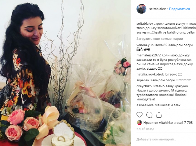 "Немного странное чувство, когда твою дочку засватали", - подписал публикацию Ахтем и продублировал надпись на крымскотатарском языке.