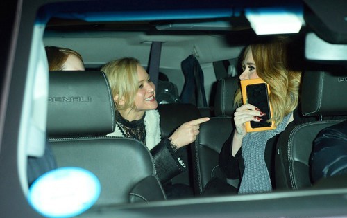 Поужинать в компании звезды пришли сразу после программы The Tonight Show с Джимми Фэллоном, в которой приняла участие Адель, исполнив несколько своих песен (в том числе и ранее не исполнявшуюся Water Under the Bridge с нового альбома). Судя по фотографиям, на которых все три девушки буквально сияют улыбками, импровизированный "девичник" прошел на ура.