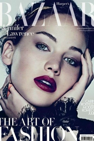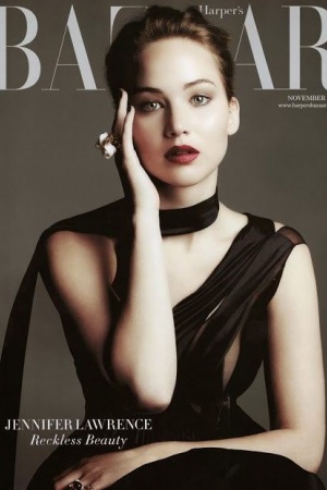 Дженнифер Лоуренс украсила ноябрьскую обложку журнала Harper's Bazaar Великобритания. Она говорила о еде, церемонии "Оскар" и критике по поводу своей фигуры.