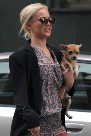 Дженнифер Лоуренс прогуливалась по Манхэттену со своей собакой Пеппи. Той самой, про которую в феврале художник по костюмам Майкл Уилкинсон шутливо рассказал журналистам People: