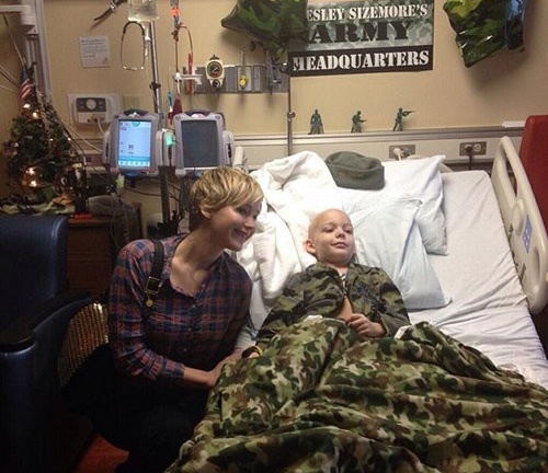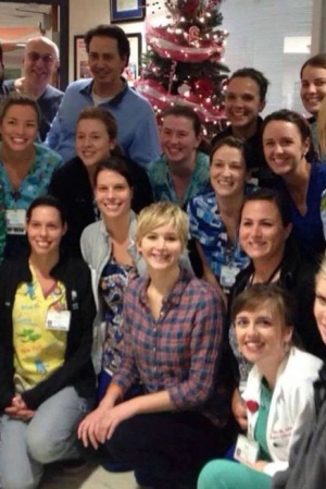 Дженнифер решила порадовать малышей городка Луисвилл в штате Кентуки своим визитом. Актриса постаралась создать праздничное настроение в больничных стенах. Дети были в восторге от веселой и непосредственной звезды "Голодных игр", поболтавшей с ними и оставившей несколько фотографий на память.