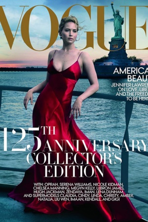 Для создания своего первого осеннего номера текущего года журнал Vogue пригласил одну голливудскую актрису, одного художника и четырех фотографов. Дженнифер Лоуренс стала звездой сентябрьского выпуска американского глянца. Сегодня у интернет-пользователей появилась возможность оценить первые кадры глянцевой съемки с ней.