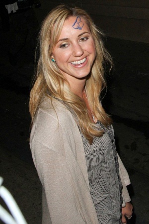 Судя по широкой улыбке, жирный синий росчерк на самом видном месте не только не смутил девушку, но даже доставил ей массу удовольствия. Джерарду тоже было весело так похулиганить. Сейчас он занят в промо-кампании фильма "Падение Олимпа" и буквально купается в лучах славы и женского обожания.