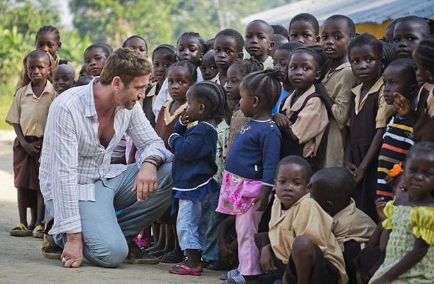 Джерард Батлер накануне Рождества совершил четырехдневную поездку в Либерию в качестве добровольца от благотворительной организации Mary's Meals, которая снабжает питанием сотни тысяч голодных детей в мире.