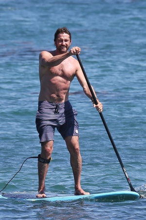 Джерард Батлер устроил себе небольшой отпуск и провел день на пляже Малибу в компании своей девушки. Парочка посвятила время серфингу с веслом.